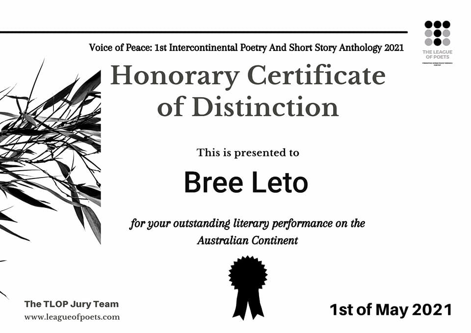 I thought I might share some news with you… my poem Rainstorm has been published in The League of Poets, The Voice of Peace Australian Anthology. This tiny regional publication is part of a larger international poetry and short story competition receiving 8,909 submissions. It’s a bit fun to be included.